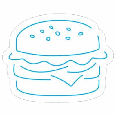 طرح وینتیج استیکر همبرگر با نوشته دهه شصتی، مناسب برای دکوراسیونهای نوستالژیک.