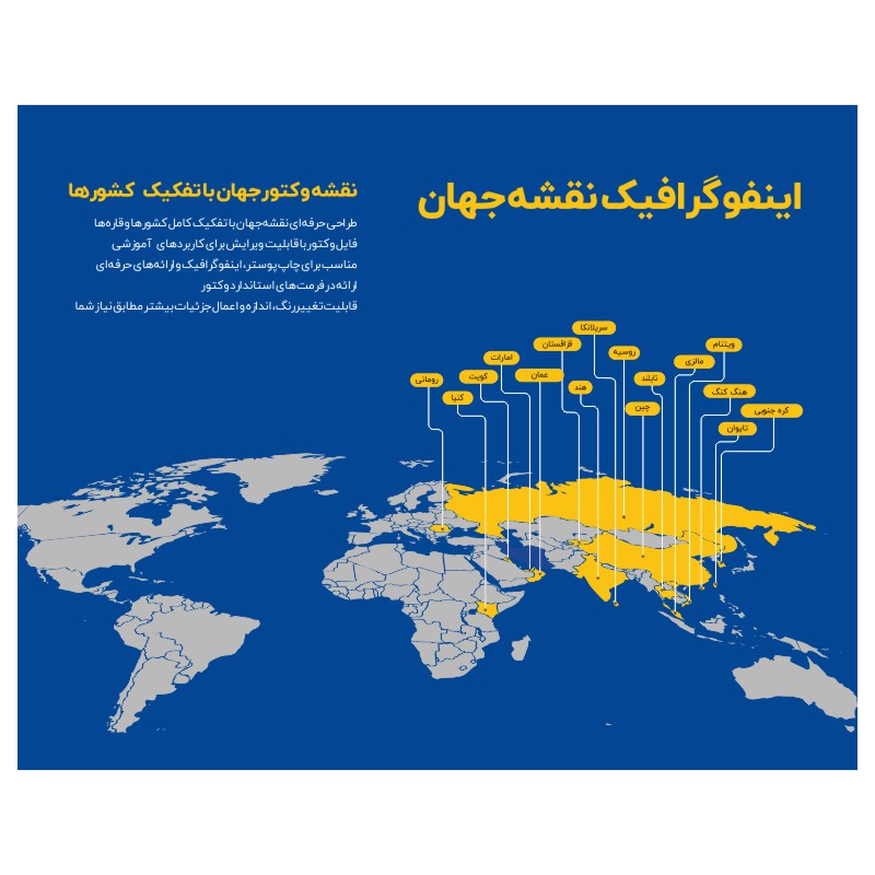 اینفوگرافیک نقشه جهان با طراحی حرفهای مناسب ارائه آماری، محتوای آموزشی، گزارش و پروژههای گرافیکی