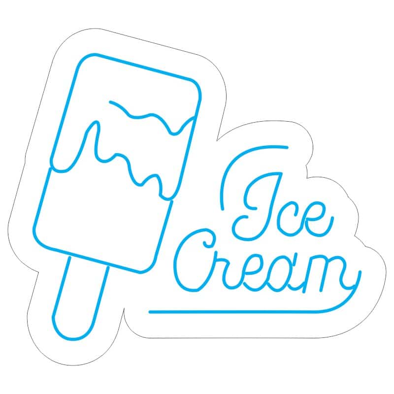 طرح نئون بستنی کیم یخی چوبی با نوشته ice cream