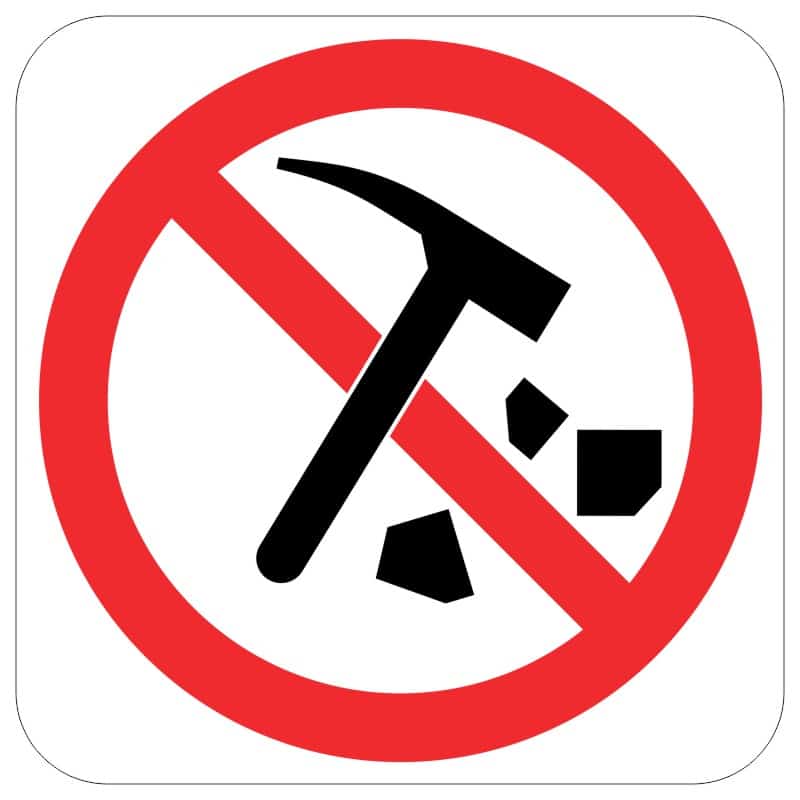 فایل لایه باز علامت ممنوعیت استفاده از کلنگ و تخریب سنگ، مناسب پروژههای ایمنی.