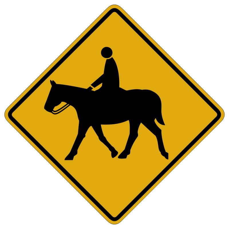 طرح لایه باز لوزی زرد جهت هشدار حضور اسبسواران در مسیر جاده.