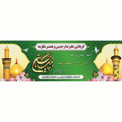 بنر لایه باز خیرمقدم کربلا طرح سبز و طلایی