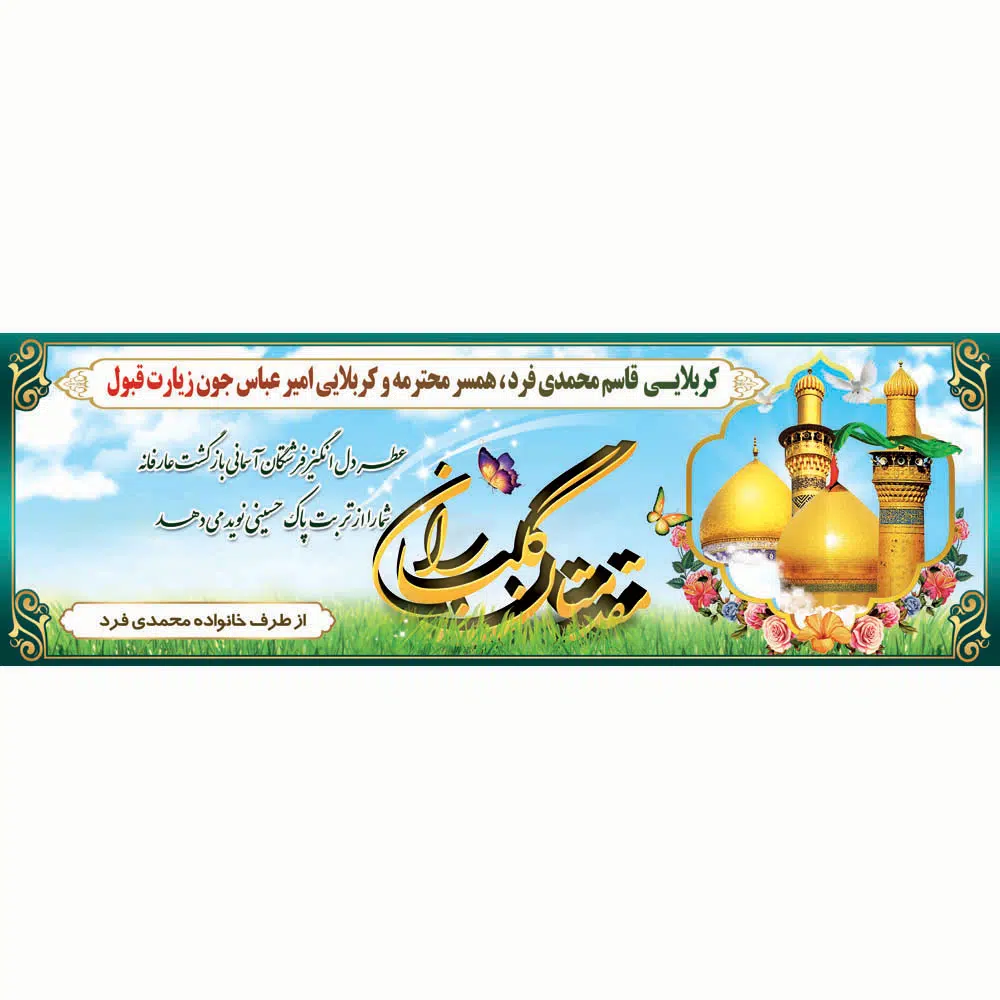 پلاکارد لایه باز زیارت قبول کربلا طرح گل