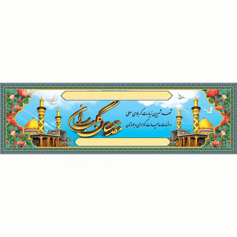 بنر خیرمقدم کربلا طرح تذهیب آبی و طلا